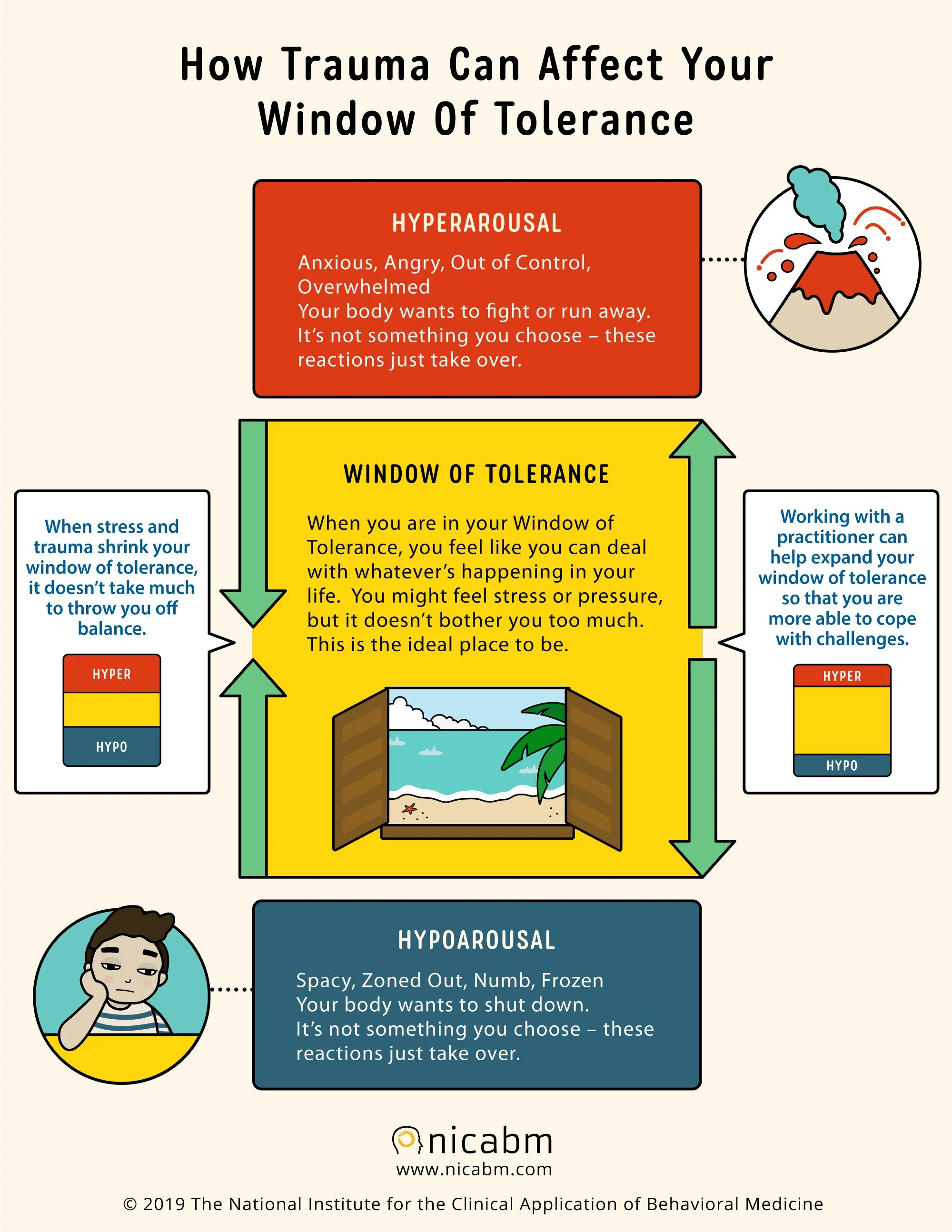 The 'Window of Tolerance' is a concept originally developed by Dr. Dan Siegel - UCLA, Clinical Professor of Psychiatry. It describes the optimal zone of physiological “arousal” for each of us to function in our everyday lives. Siegel says that when we are in this window (or river), we can effectively manage and cope with the stress and demands of our everyday life and most easily communicate with others. It could be considered our calm zone or our area of flow.